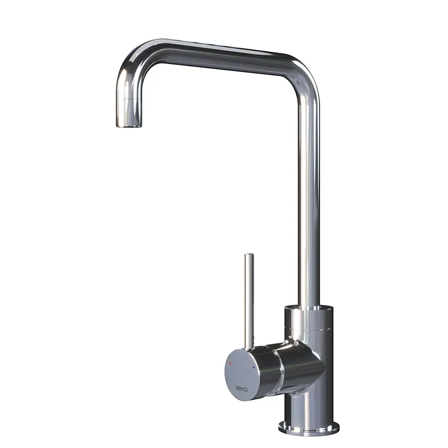 A bold square-spout tap with a sleek architectural design.
