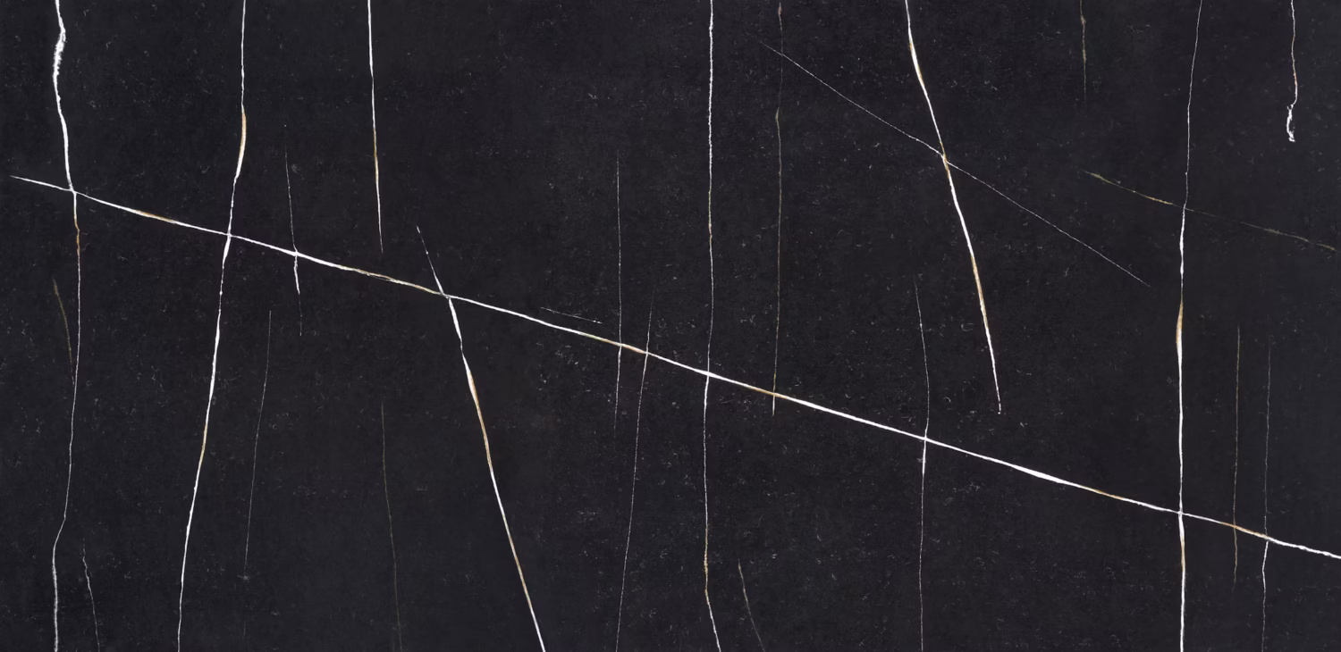 A striking black quartz with elegant white veining reminiscent of luxury marble.