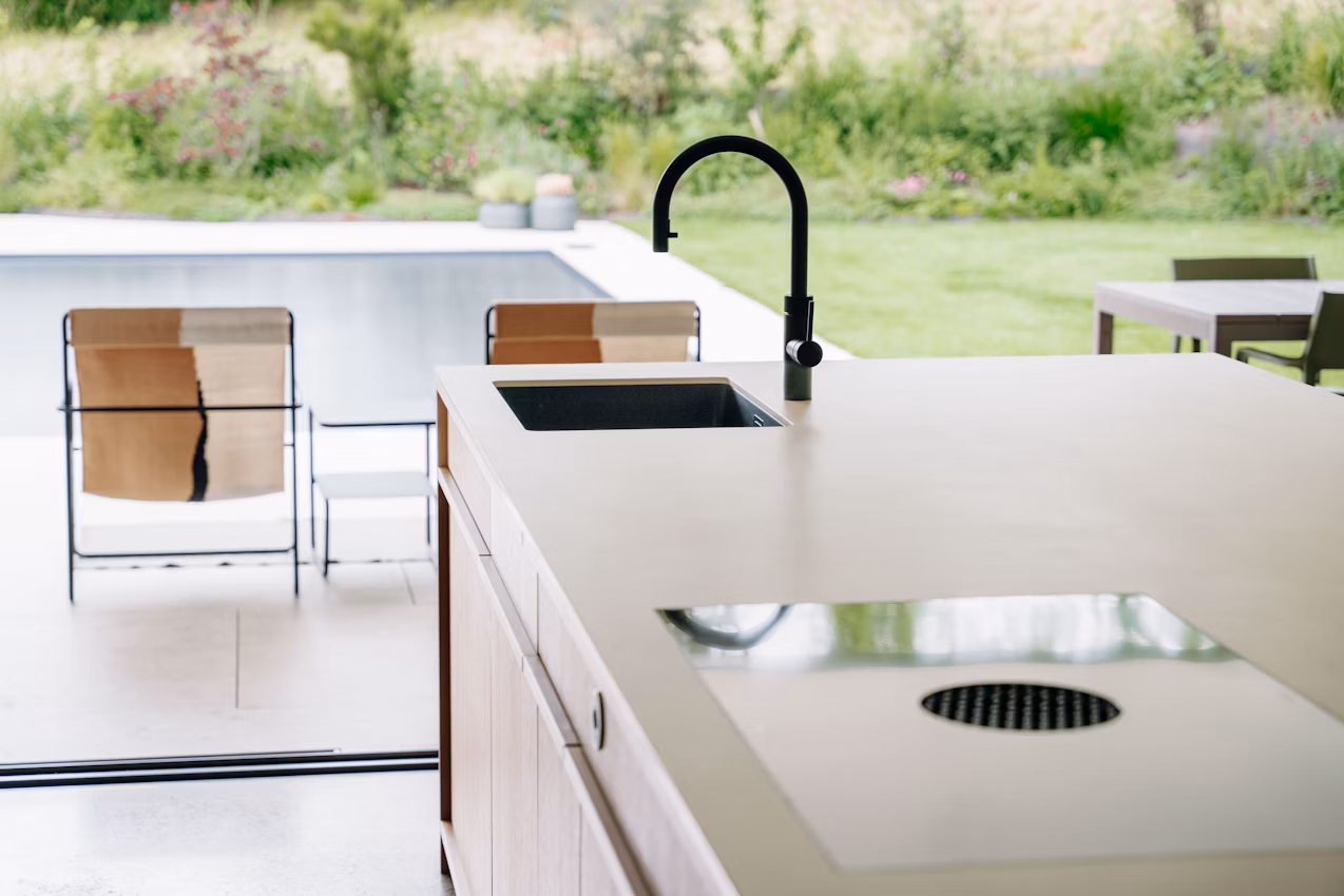 For ultimate peace of mind in your kitchen and other areas where fire is involved, Laguna Dekton is incredibly fireproof. It is engineered to withstand very high temperatures without scorching, burning, or cracking. You can confidently place hot pots and pans directly onto this Dekton worktop straight from the hob or oven. This feature makes it a safer and more durable choice compared to many other materials, including some quartz worktop options.