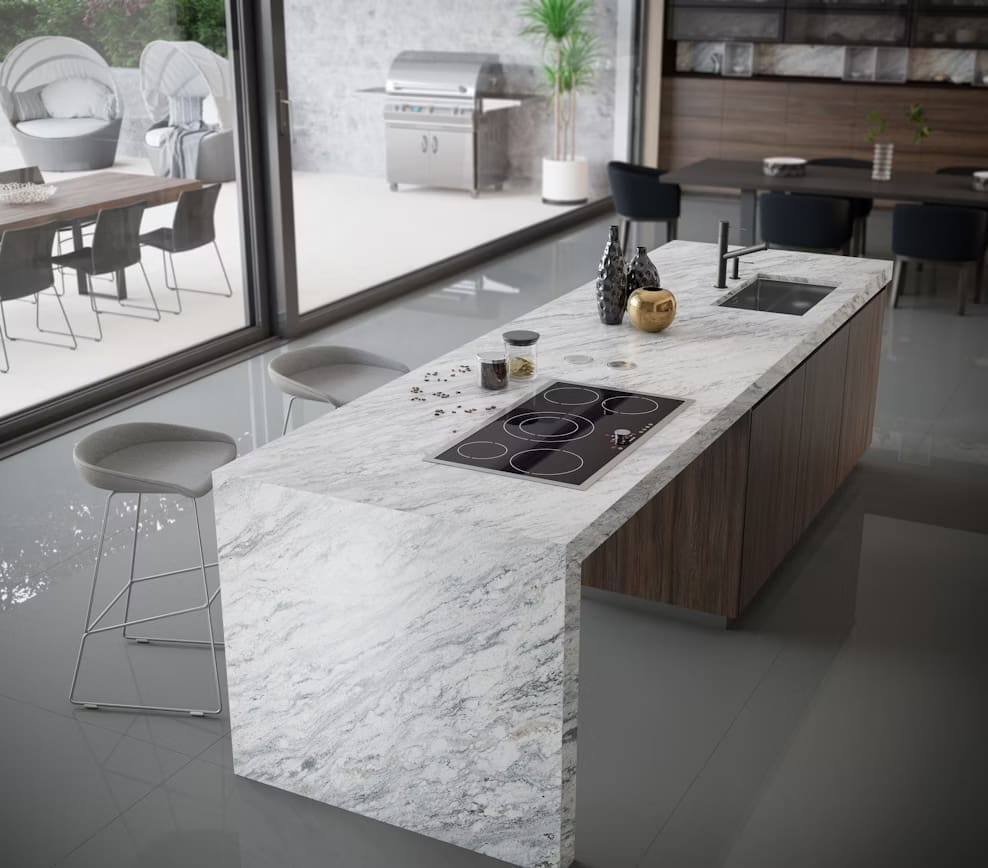 Who doesn’t know about Sant Angelo Sensa Granite worktops in the UK? It is a popularly-known, beautiful, and highly functional natural stone. It is celebrated and installed as the best worktop material all over the UK for its striking appearance and enhanced durability. It is part of the exclusive “Sensa” collection available at MO’s STONEX. It distinguishes itself with a light, often creamy white or ivory grey background dramatically contrasted by bold, expressive grey veins. It can appear black or even subtly bluish but it has a pale background and grey is veining. You will see that each slab is unique to showcase its own distinct patterns.